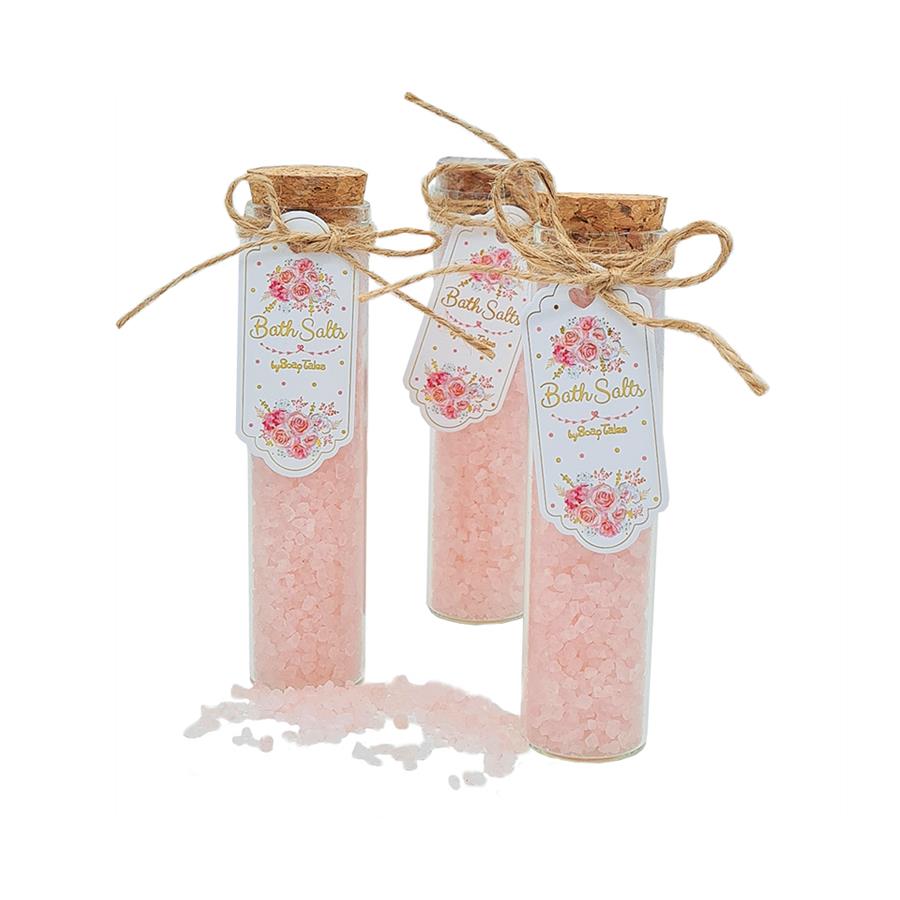 Άλατα μπάνιου ροζ 80gr μέσα σε γυάλινο δοχείο 2,5×12,5cm με άρωμα white musk & jasmine