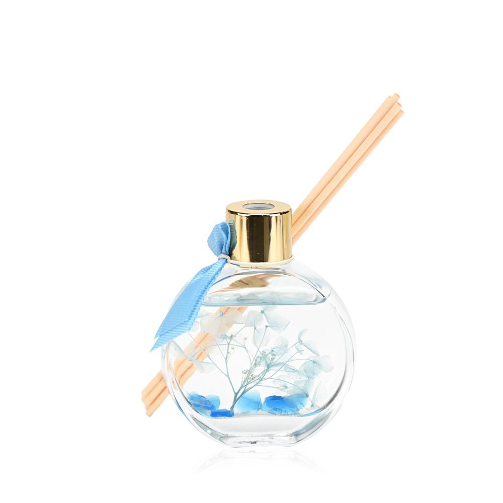 Αρωματικό χώρου με αποξηραμένα γαλάζια λουλούδια και μπλε πέτρες 60ml. Διάσταση 9×7,2×2,8